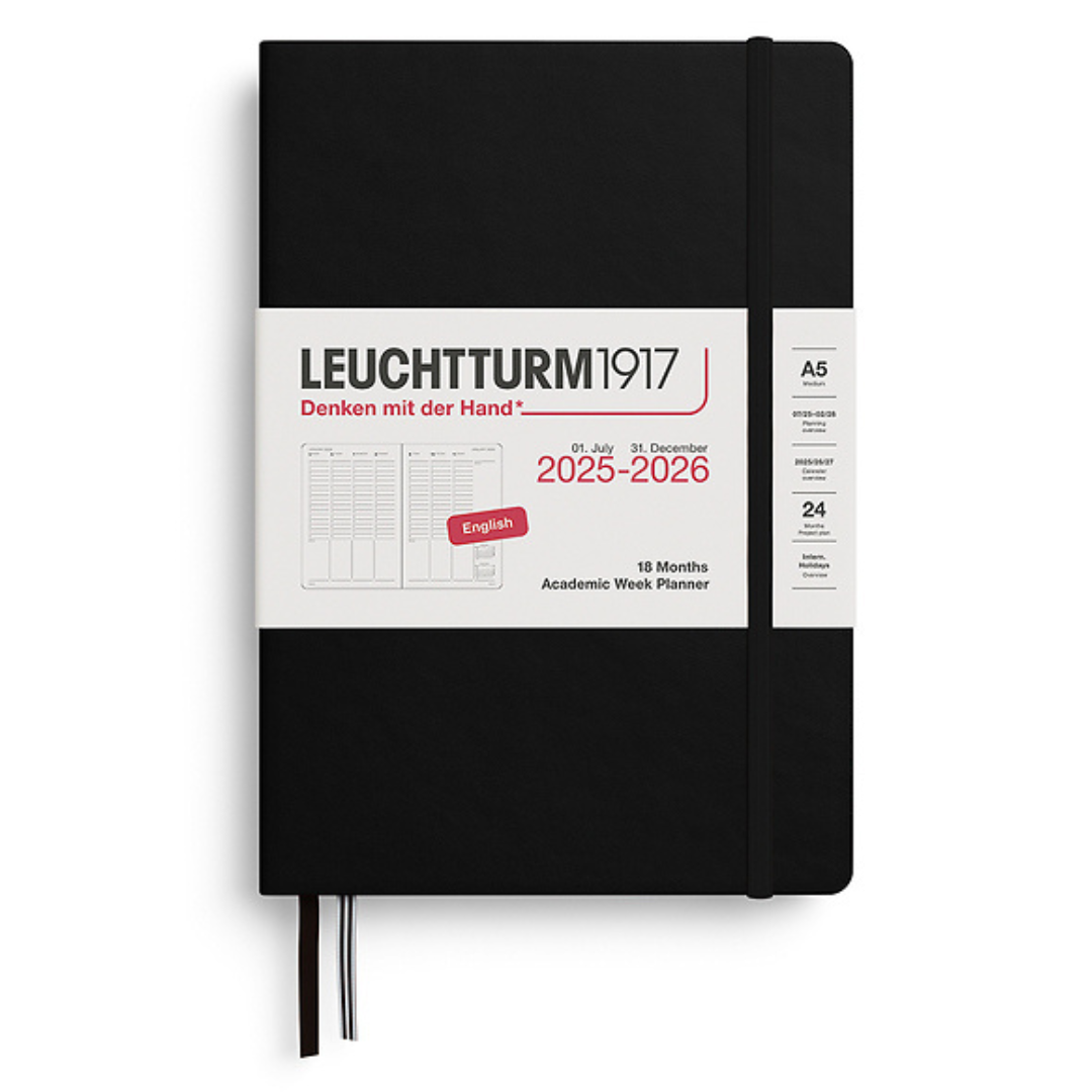 Leuchtturm1917 - 2025-2026 Academic Weekly Planner - 18 Months - A5 (Black/Hardcover)