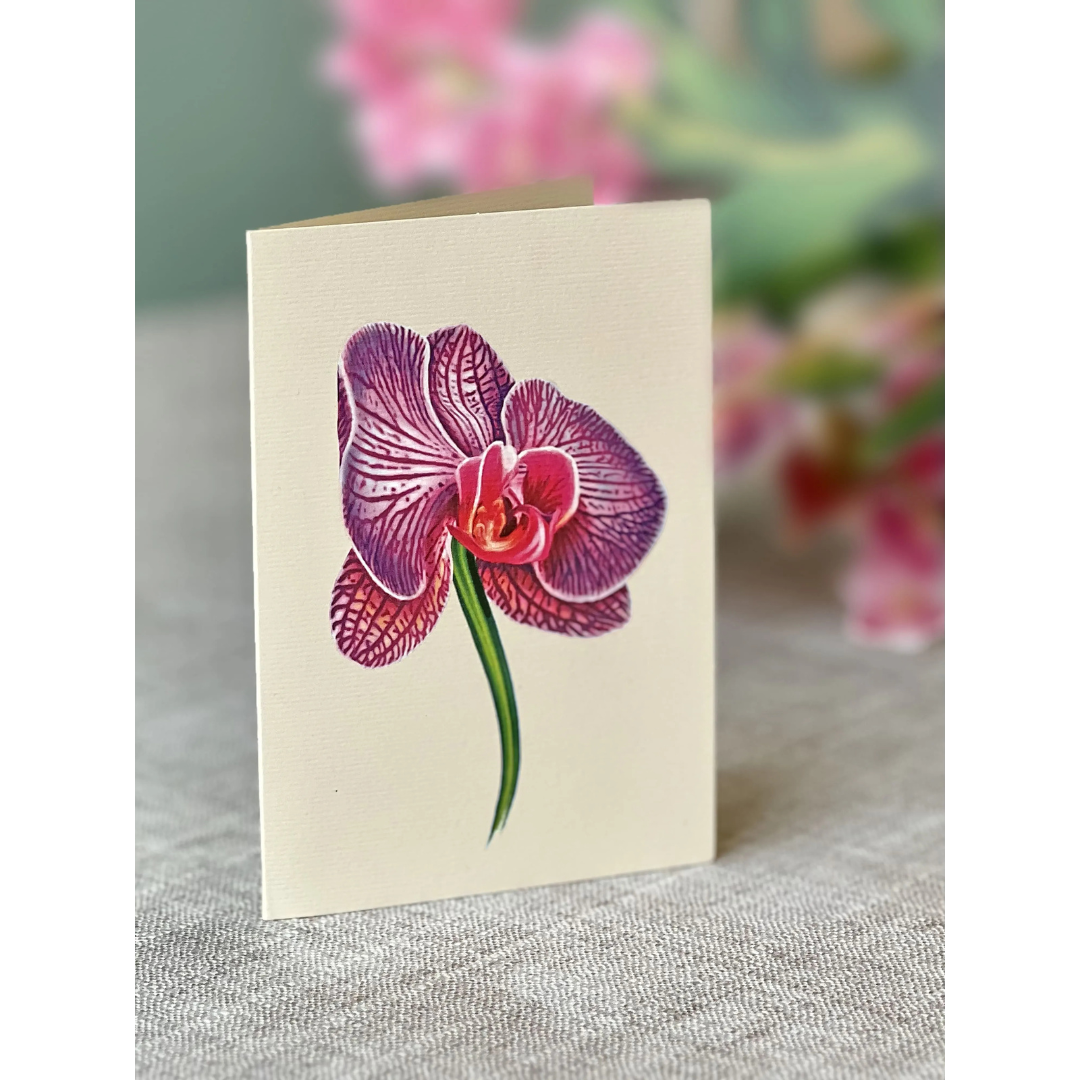 • Enchanting and serene, this luxurious display of amethyst and blushing pink orchid blooms is stunning, effortless, and chic