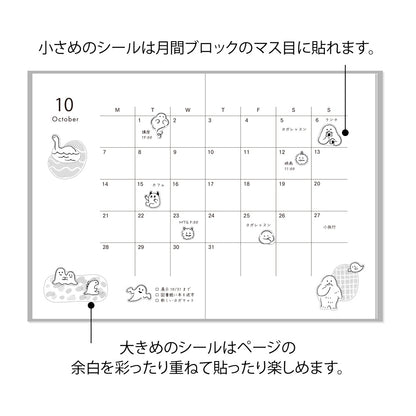 A sticker made of masking tape for decorating notebooks and diaries, planners. The translucent sticker can be applied on top of each other to create even more fun designs. This sticker for planners combines larger stickers which are in increasing demand for planner decorations with smaller ones.
