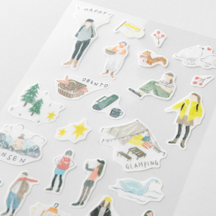 A sticker made of masking tape for decorating notebooks and diaries, planners. The translucent sticker can be applied on top of each other to create even more fun designs. This sticker for planners combines larger stickers which are in increasing demand for planner decorations with smaller ones.