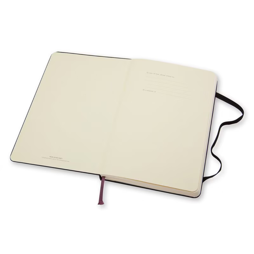 • Rounded corners, elastic closure and matching ribbon bookmark