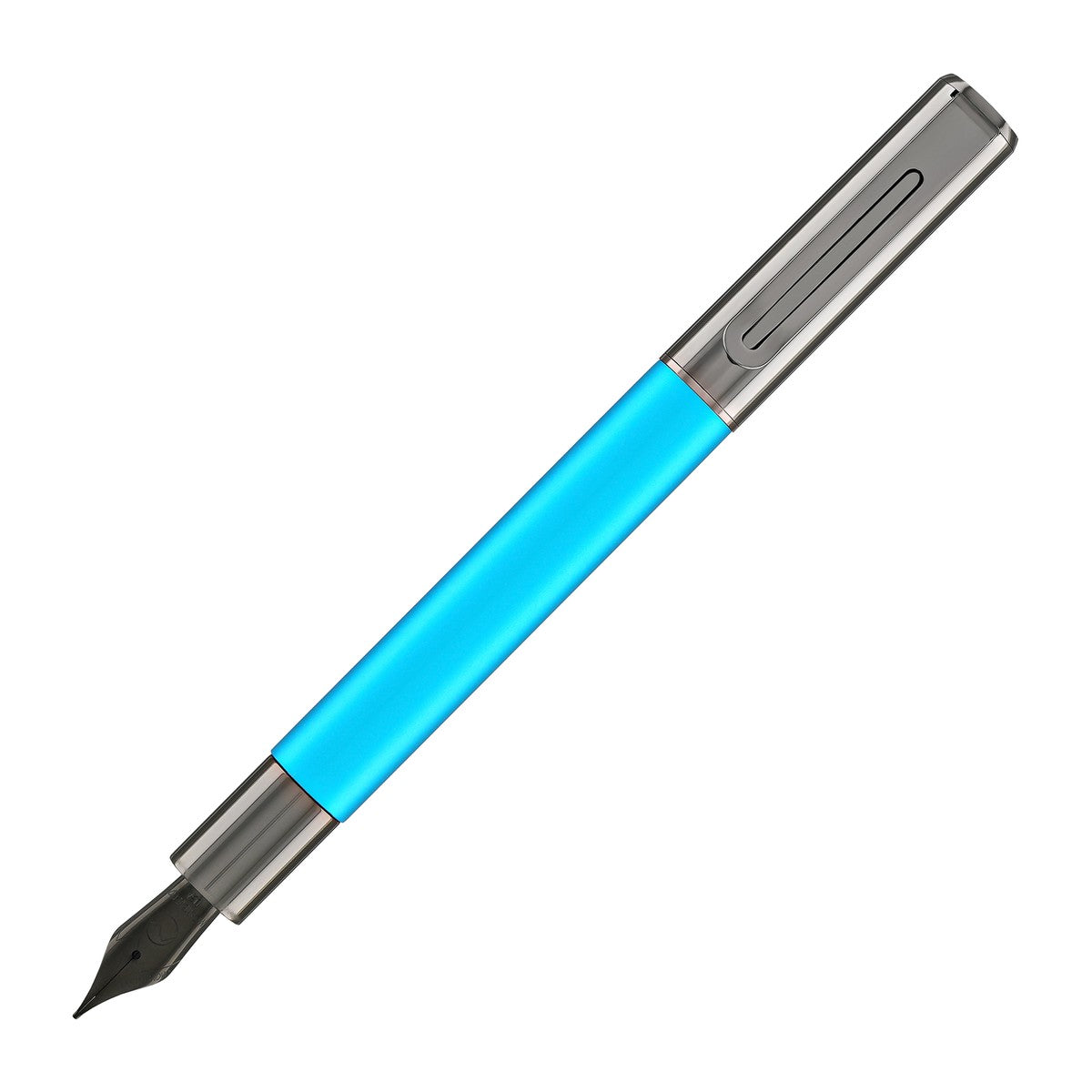 This turquoise fountain pen comes with a standard international converter and an ink cartridge.