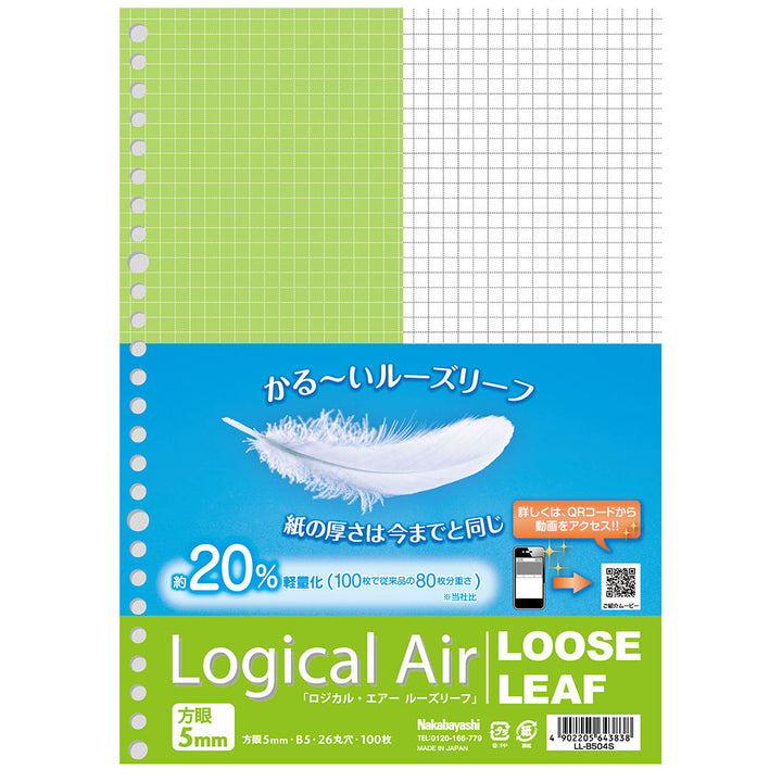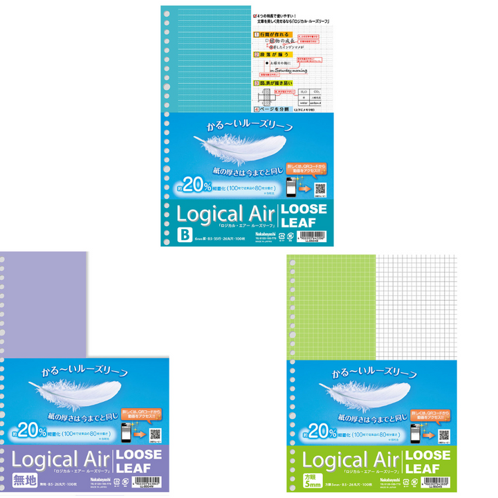 Nakabayashi - Logical Air Loose-Leaf 100 Sheets (Lined 6mm, Grid and Blank)