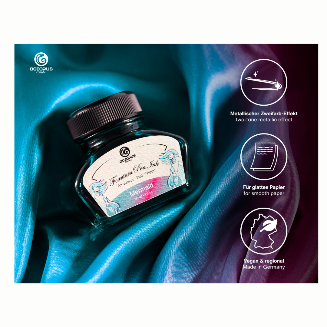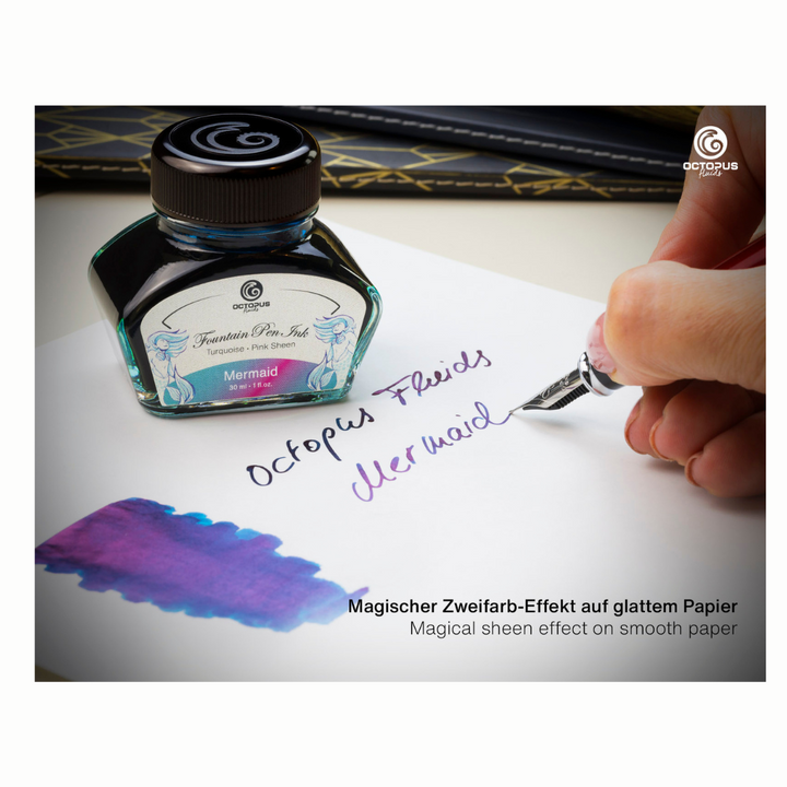 Octopus Sheen Inks are a must-have for creative writers. Whether you keep a bullet journal, write poetry or design greeting cards. Enrich your writing experience and add a touch of sophistication to your personal messages and even everyday notes with the special sheen!