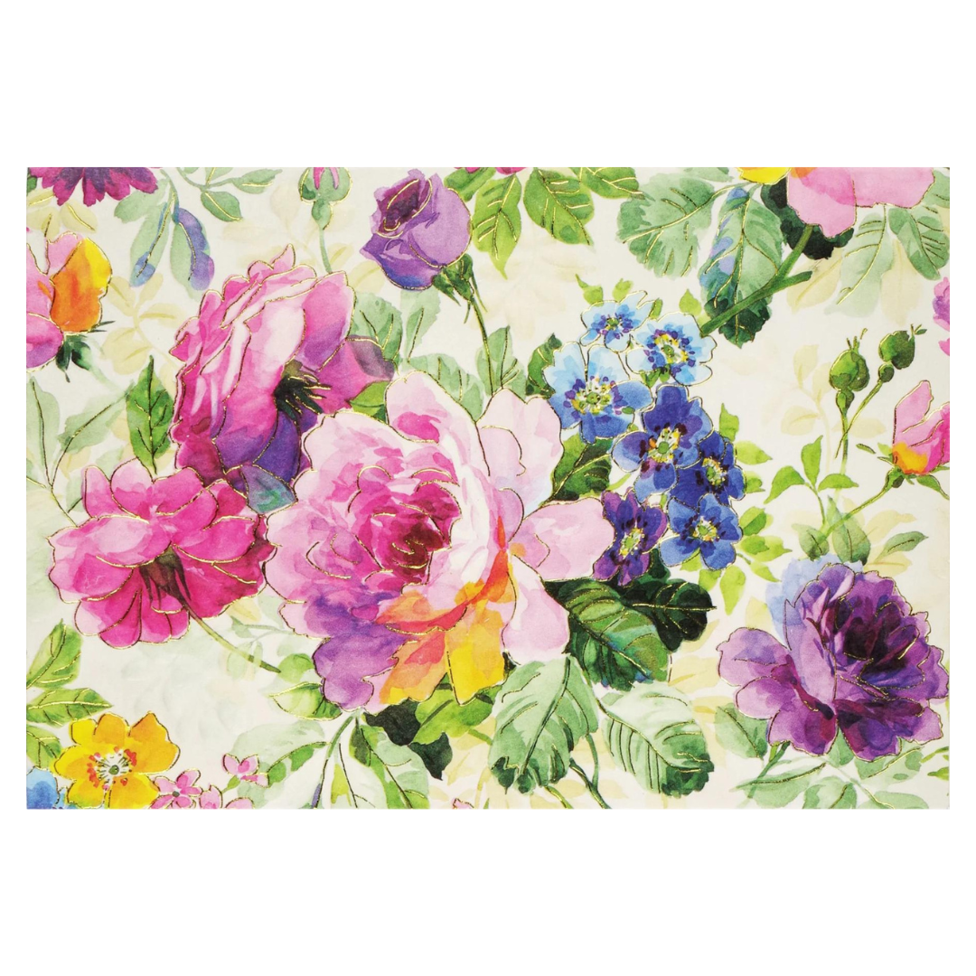 • Design: a gorgeous array of flowers in shades of pink, purple, and yellow.