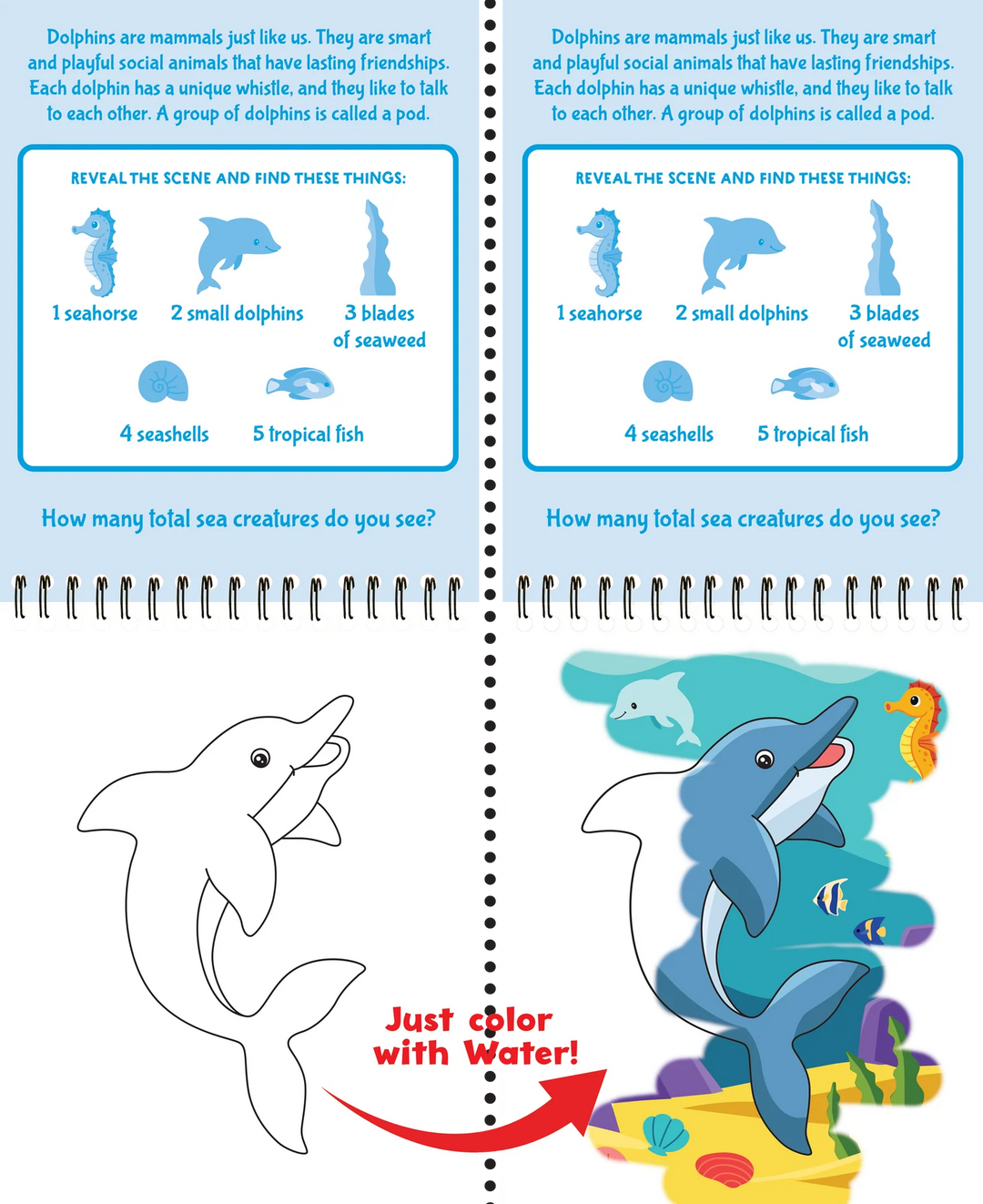 How it works: Simply use the water pen included to brush each scene with water and watch as colors and hidden objects appear like magic!