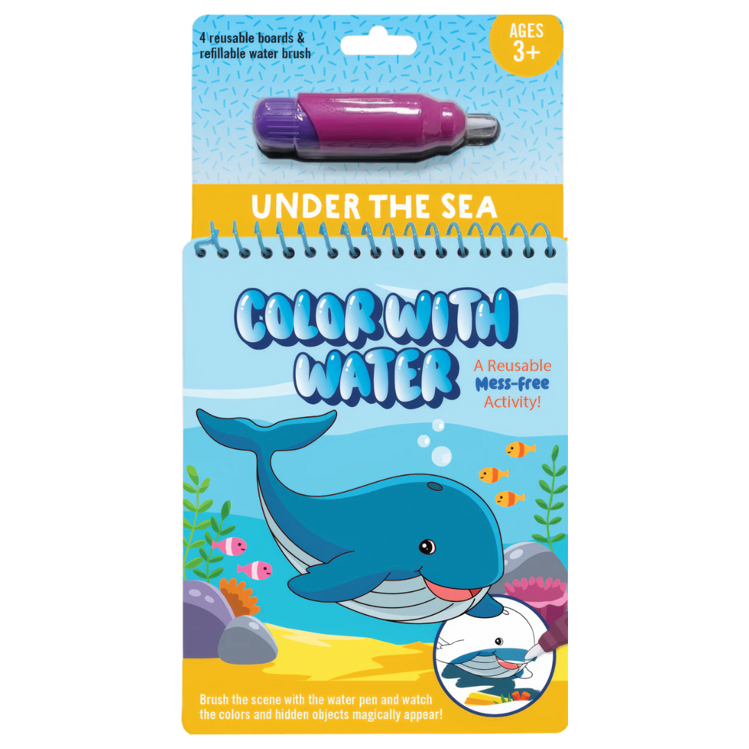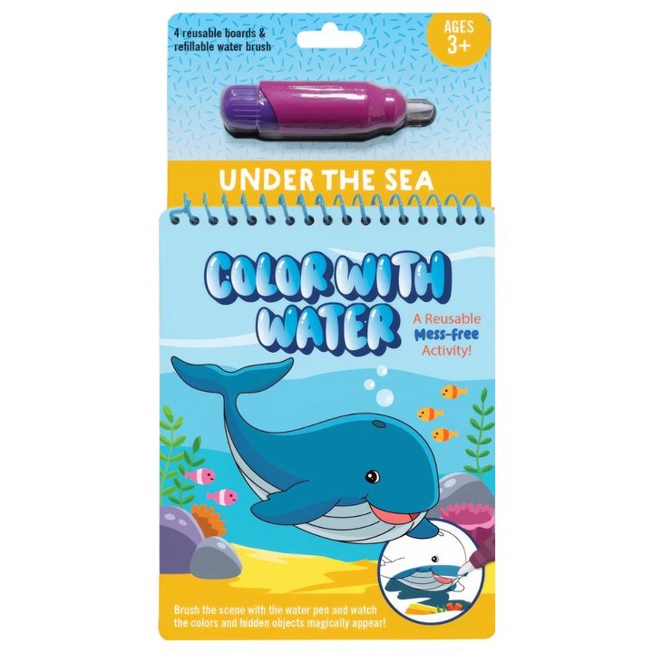 This Color with water colouring book is the perfect mess-free activity! Brush the scene with the water pen and see the colours and hidden objects appear.