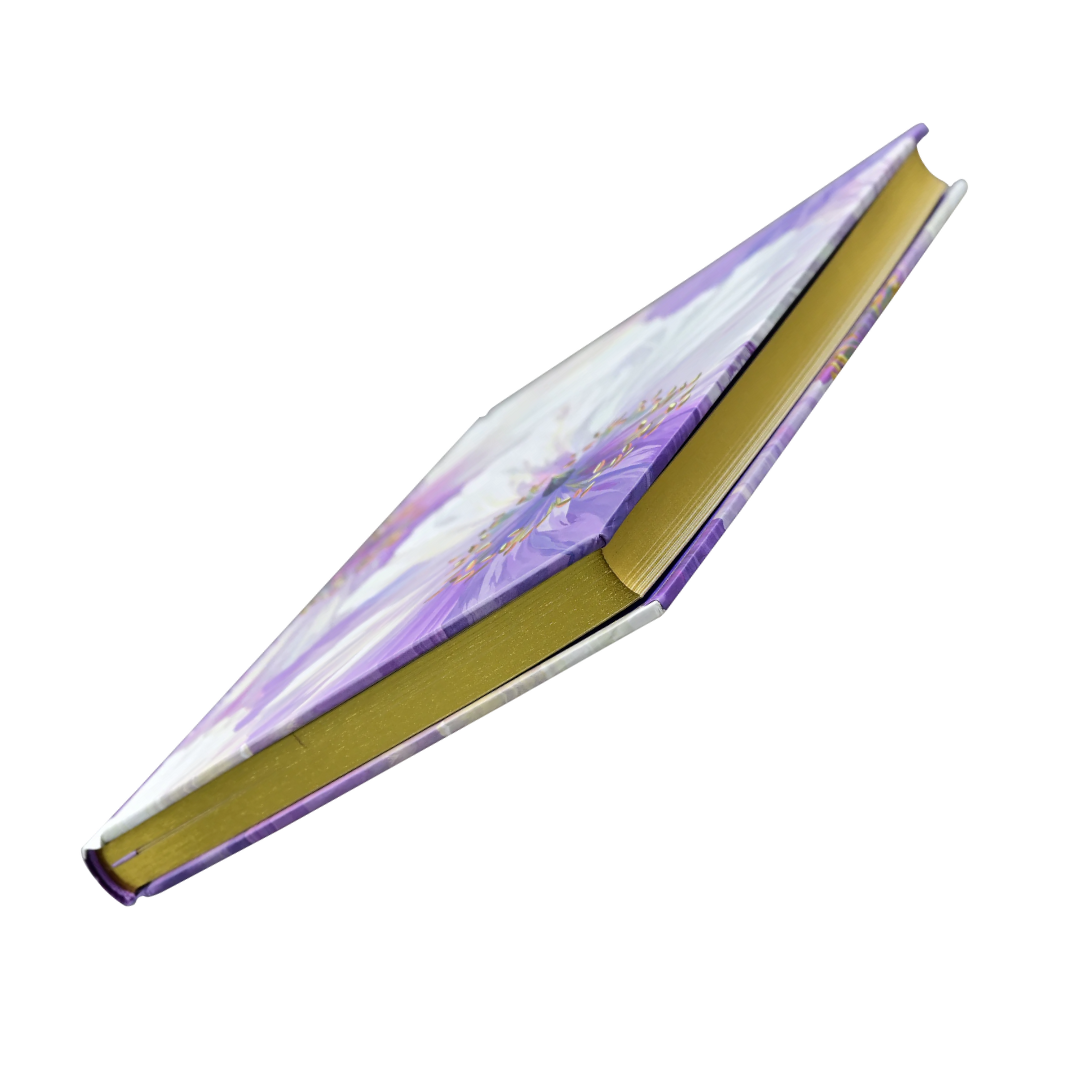 Elegant journal features an oversize illustration of poppies, with their ruffled, papery petals unfurled in shades of white, pink, and violet. The design is embossed and embellished with hand-selected touches of gold foil.