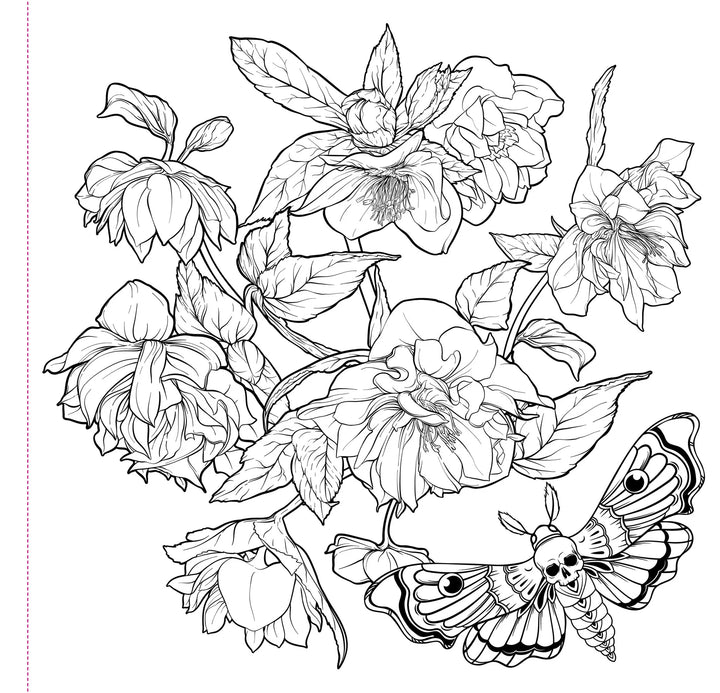 This colouring book includes 31 stress-relieving designs that allow you to colour your way through gorgeous gardens with a moody, mysterious flair!