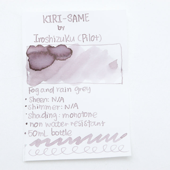 PILOT - Iroshizuku 50ml Bottled Fountain Pen Ink - Kiri Same Ink Swatches - Free Shipping to US and Canada - 百乐 色彩雫 彩墨 试色 雾雨