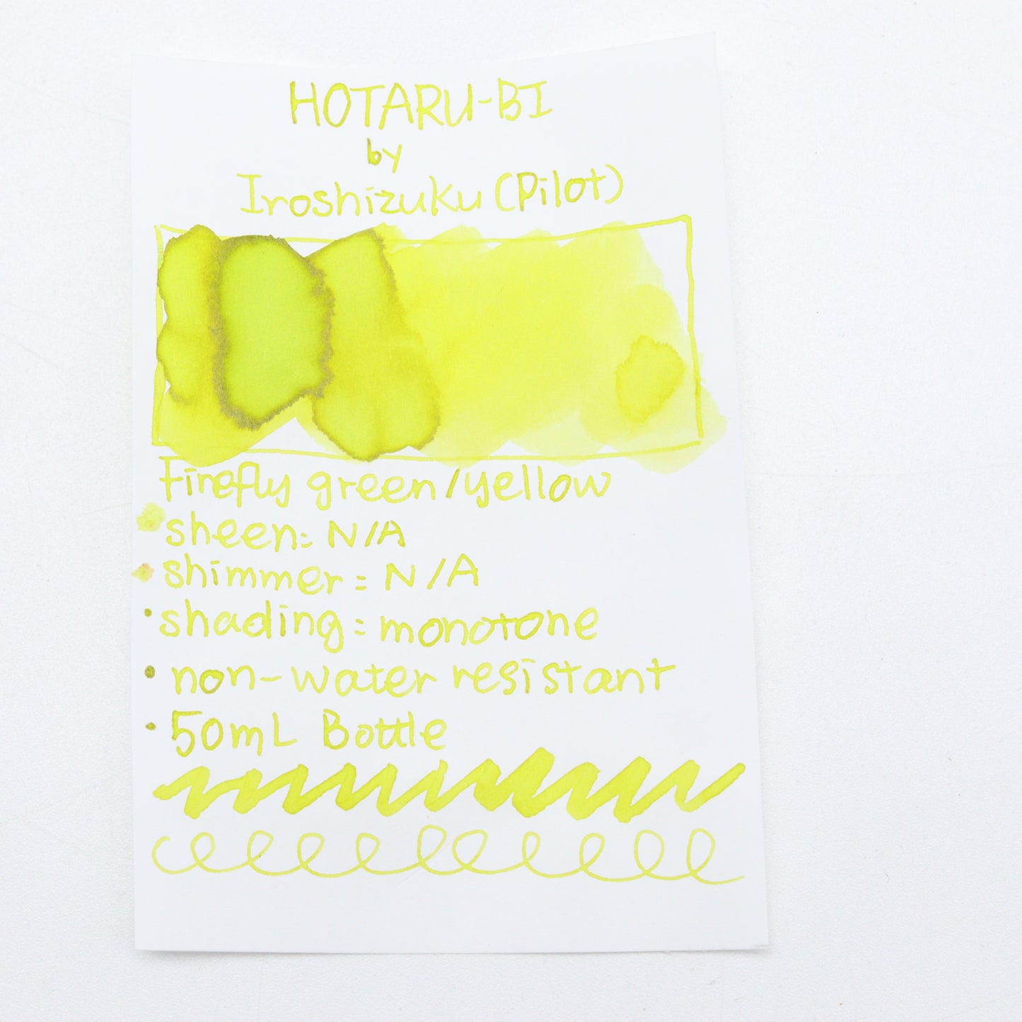 PILOT - Iroshizuku 50ml Fountain Pen Ink - HOTARU-BI (Yellow Green) Ink Swatches - Free Shipping to US and Canada