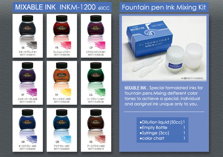 Special formulated inks for fountain pens. Mixing different color tones to achieve a special, individual and original ink unique only to you.