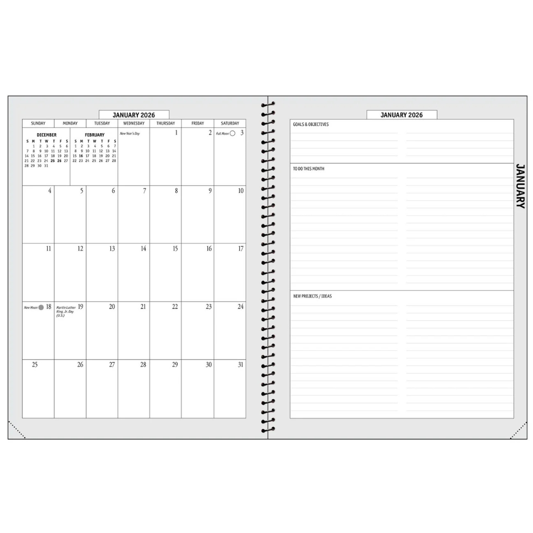• Monthly double-spread planning pages