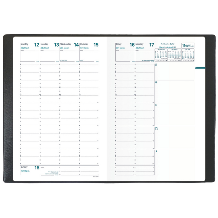 • Tear-off corner opens to week in progress