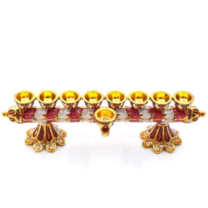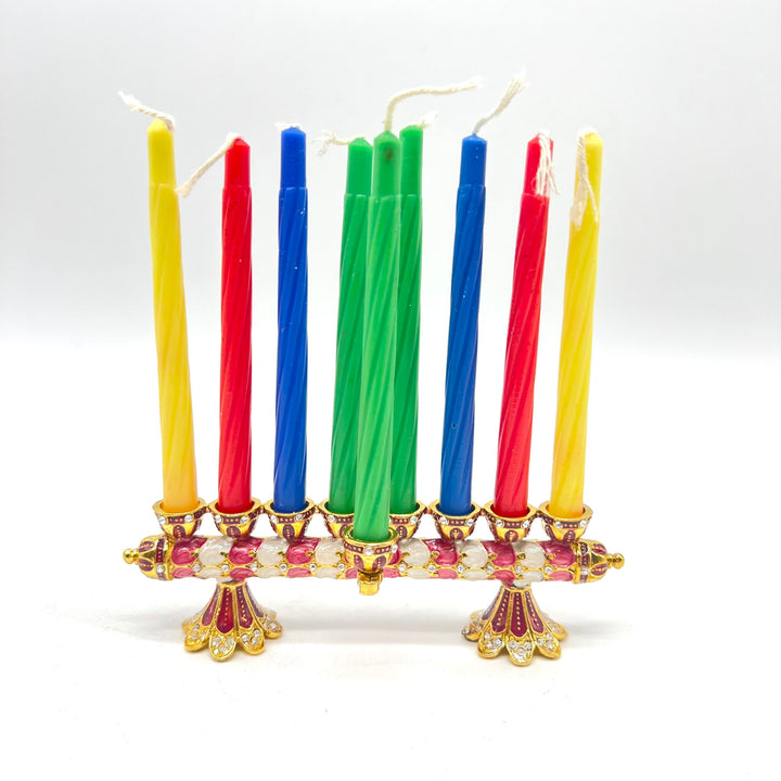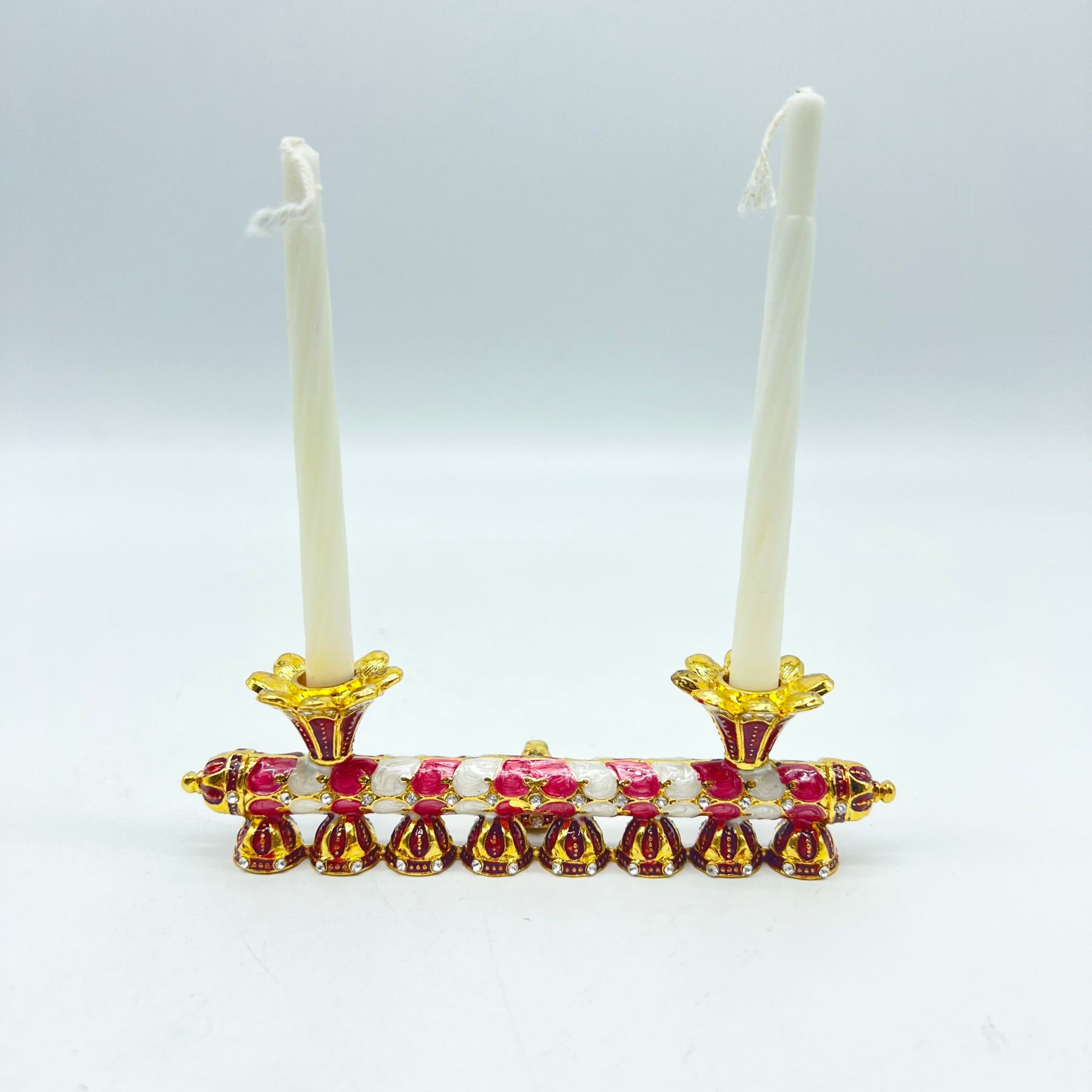 Reversible Chanukah Menorah And Shabbat Candlesticks – Red, White & Gold Enamel Finish With Swarovski Crystals - Buchan's Kerrisdale Stationery