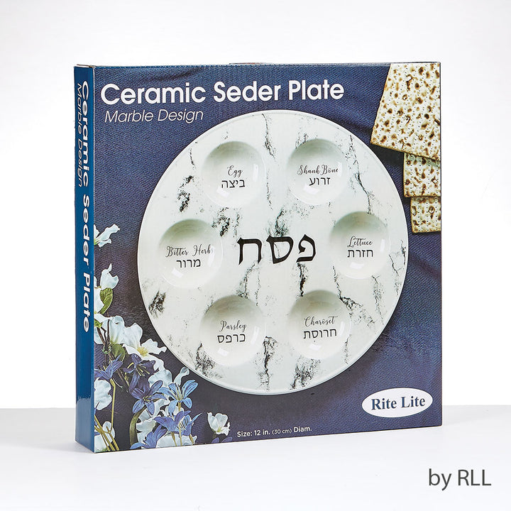 Raise your Passover table to new heights with the fine design of this quality ceramic Seder Plate! Along with a marble pattern, the names of the six special foods are written in English and Hebrew, providing an elegance enhancement to your Passover experience.