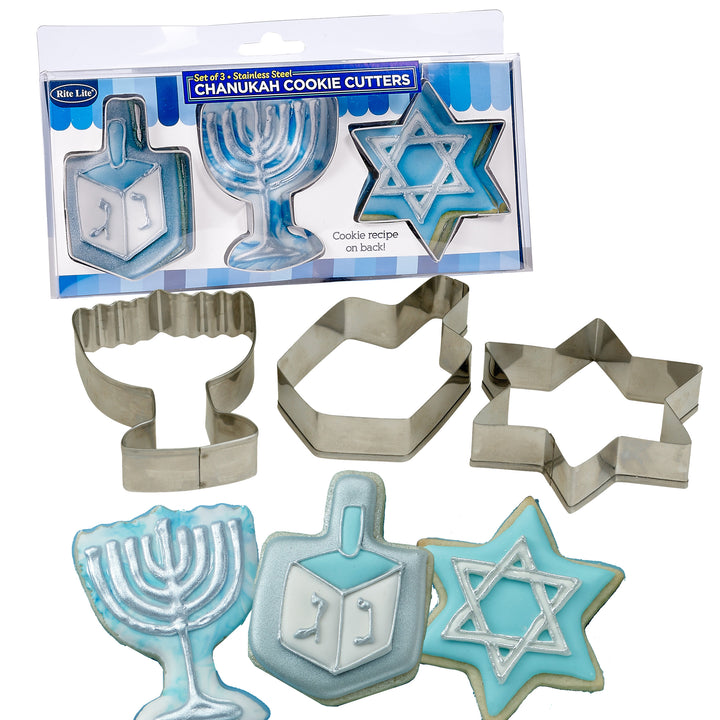 You love Chanukah and you love cookies, and when you combine them both, it makes Chanukah really taste great! This package features 3 great metal Chanukah themed shapes.