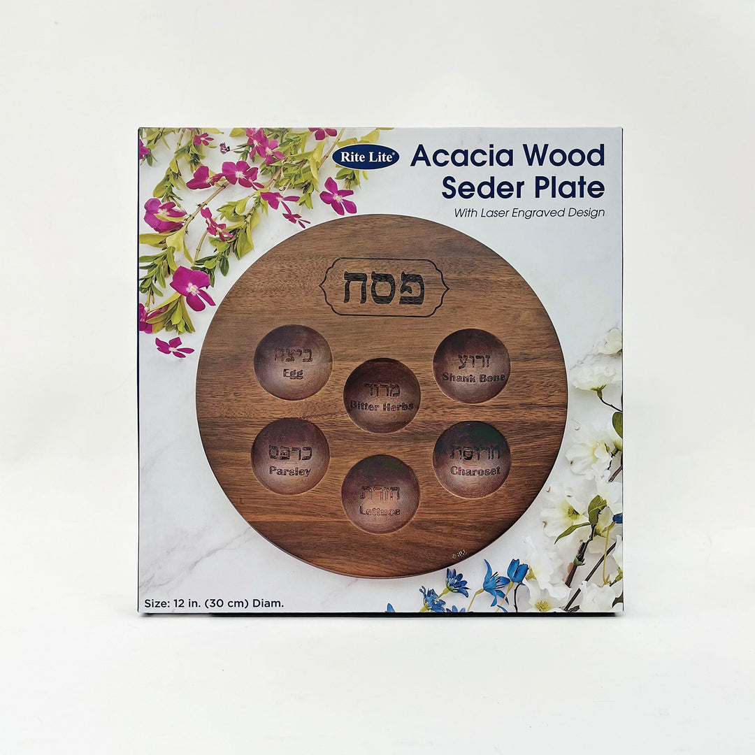 Bring out the natural beauty of Passover with this luxurious Acacia Wood Seder plate! This gorgeous single-piece of crafted wood features depressions for each of the symbolic foods, with the proper name of the food etched in both Hebrew and English. Highlighted with the word "Passover" in Hebrew at the top, this plate will introduce the nature allure of nature onto your table.