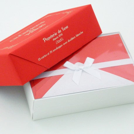 Boxed 25 deckled edge cards and 25 lined envelopes