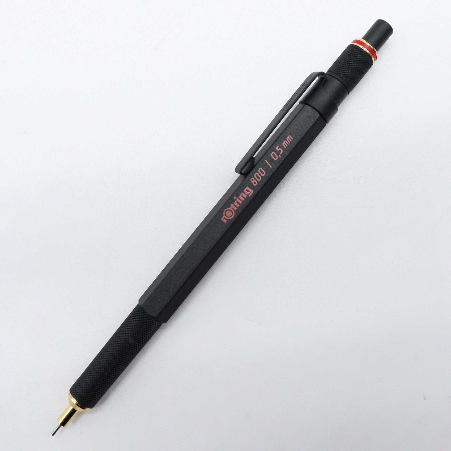 Designed for comfort and precision, the 800 Series is a top of the line mechanical pencil for advanced users searching for high quality. Its hexagonal body makes the pencil easy to hold and prevent lead breakages. Provides users with the unique "Twist and Click" retractable mechanism. Balanced and ergonomic, the rOtring 800 includes a lead hardness indicator and the exclusive Rapid B Eraser. Firm grip offers supreme comfort for writing and drawing with precision. Body Material: Plastic Size Dimensions: 5.55 x 0.31 x 0.31 inches Weight: 0.16 ounces Line size: 0.5mm