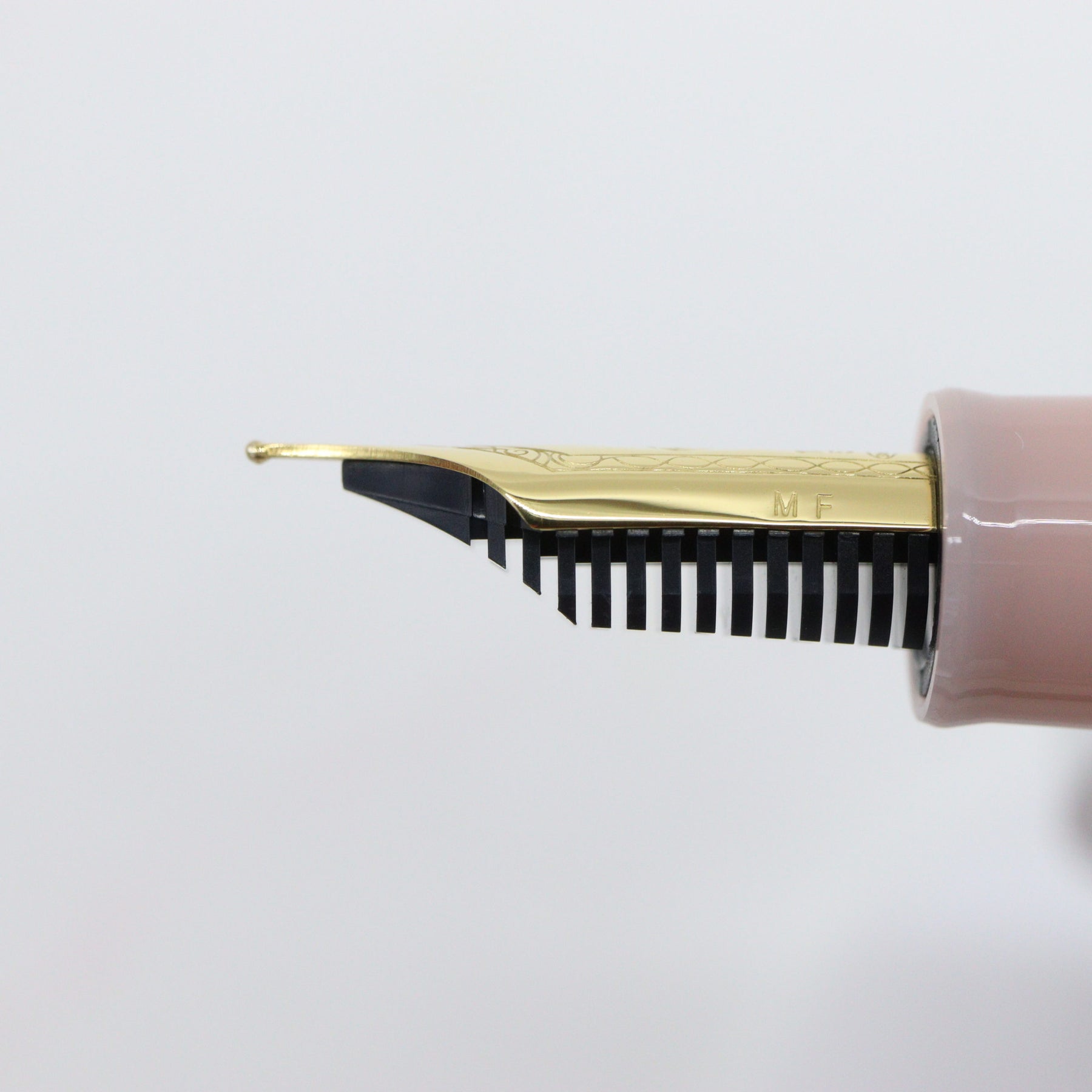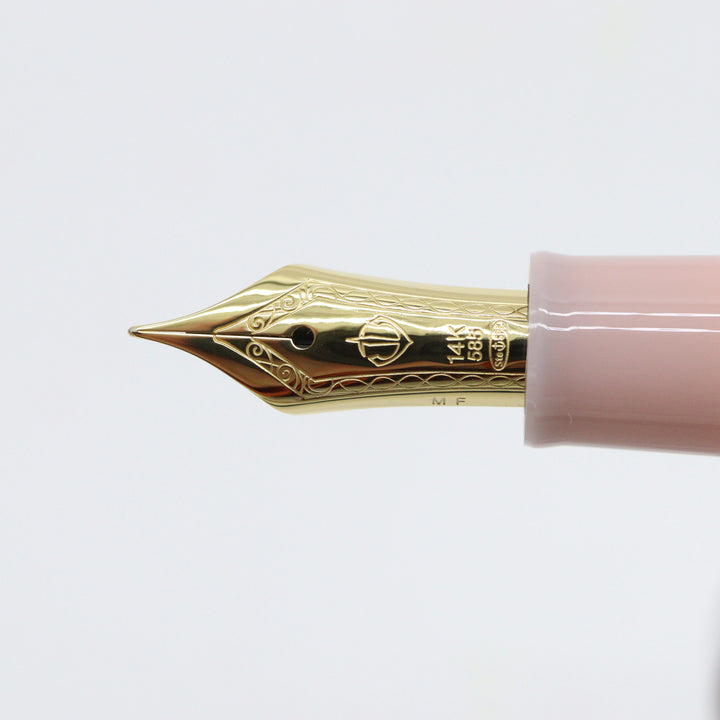 This pen, like others in the Pro Gear Slim line, offers a mid-sized profile that provides a great balance of portability and comfort for various hand sizes. The willow pen draws inspiration from the Manyo Sakura and Manyo Konagi inks. The included ink is Sailor Manyo Sakura, and the gold cherry blossom motif on the finials adds a touch of elegance.