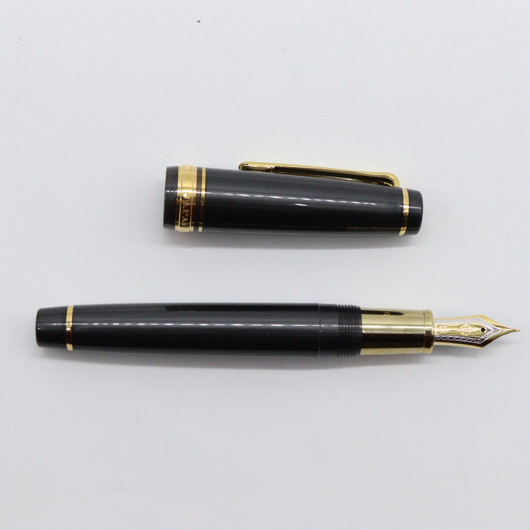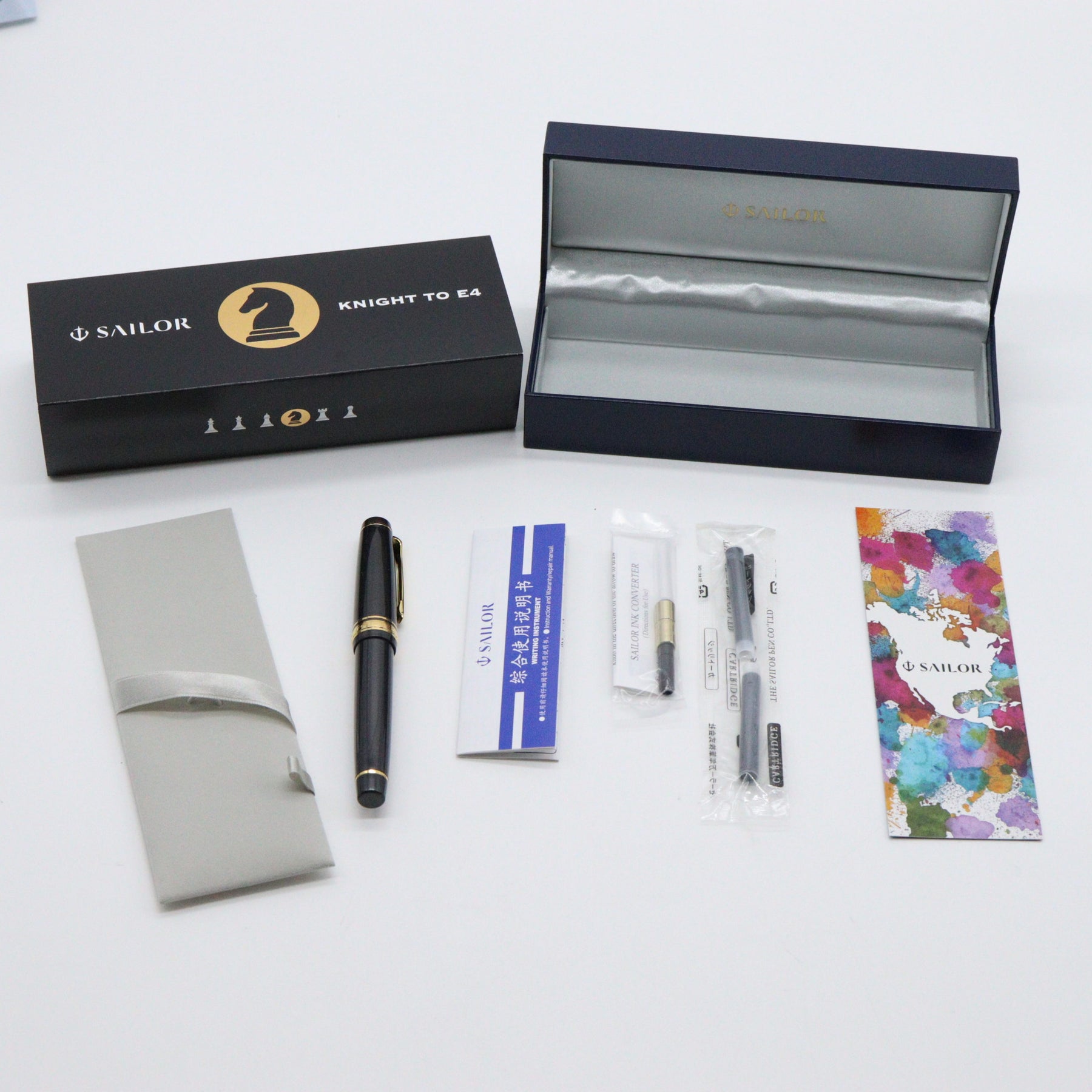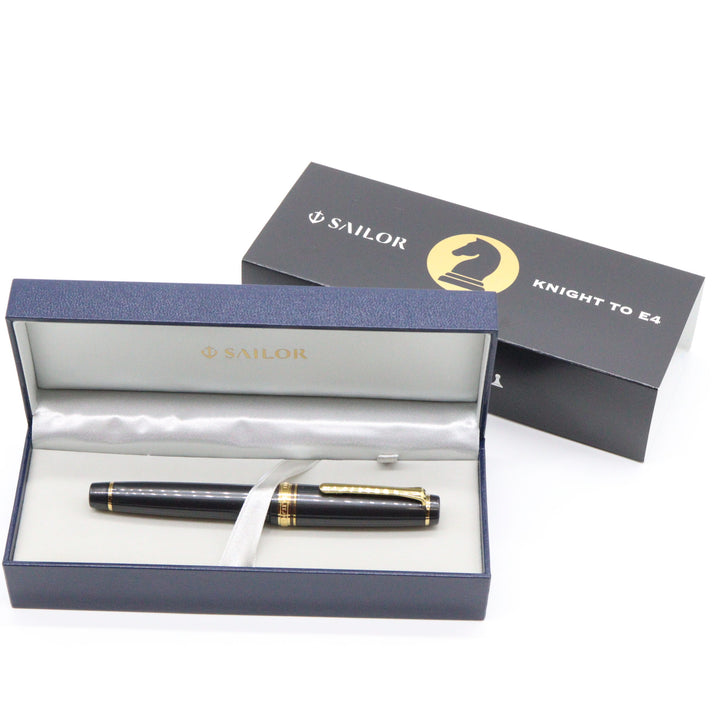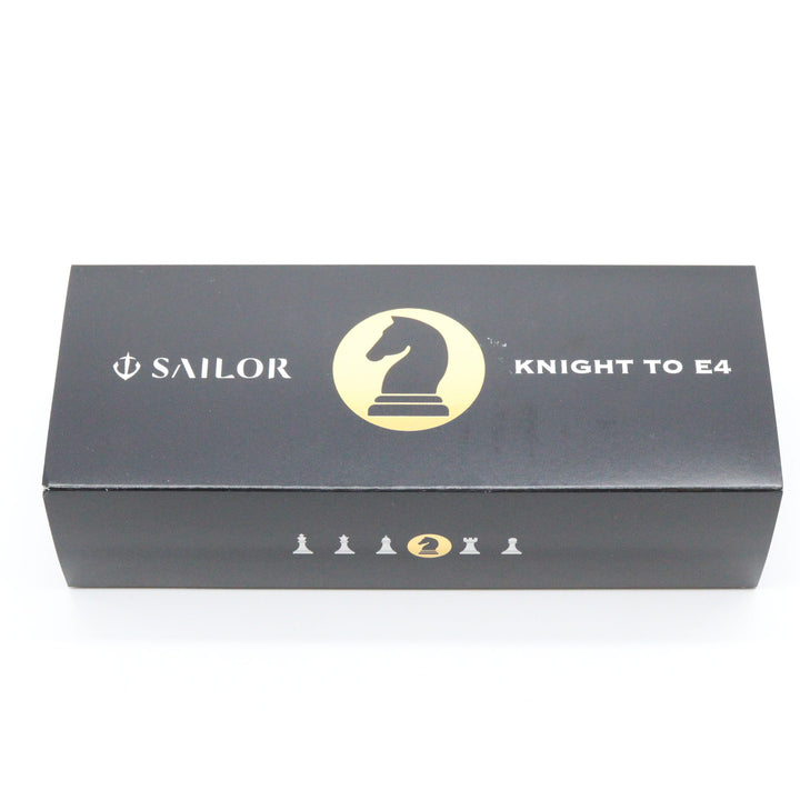 Plan your game-winning strategy carefully—the first in The Checkmate Series by Sailor has arrived to the table and is ready to play. Knight to E4 is a pearlescent charcoal Professional Gear with a slight shimmer to the barrel, gold-plated trim, and 21K solid gold nib. The top finial features an elegant, exclusive design of a golden chess knight, and the section sports a beautiful gold ion-plated metal finish to match. Knight to E4 is the FIRST ever North American Exclusive with a weighted metal section so it even feels like a real chess piece!! Choose your piece wisely, as there are only 500 Knights available!!