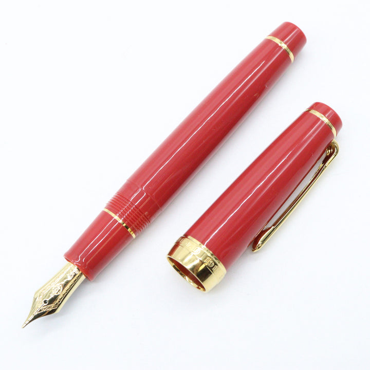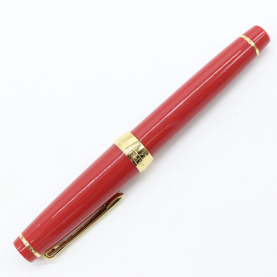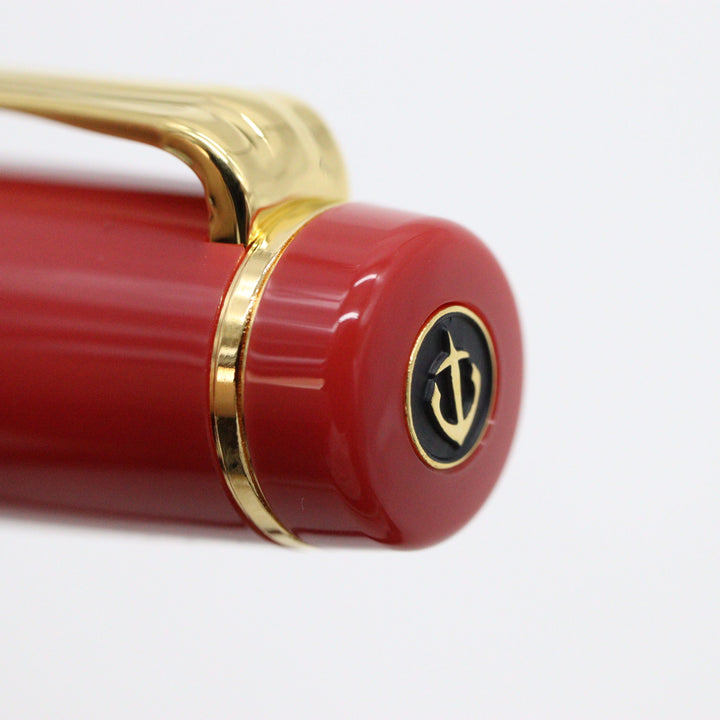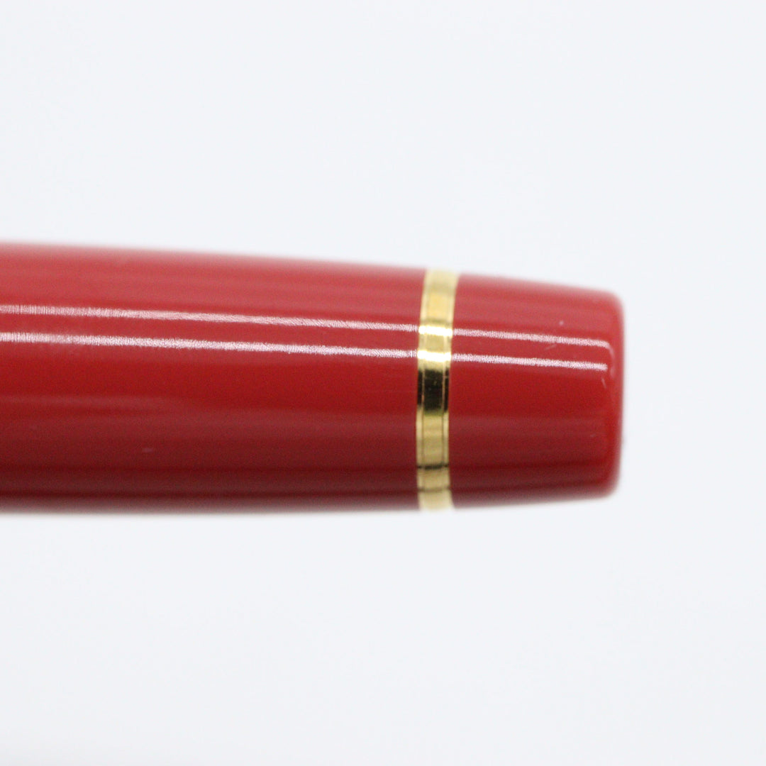 Color: Deep reddish coral hue with gold trim