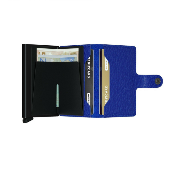 The iconic Secrid Crisple Blue Black Miniwallet is a compact, stylish, and secure wallet. The wallets of secrid are available in a wide variety of colors & styles and the interior of the mini wallets offer ample space for cards, paper money, receipts, and business cards. Unique and patented cardslide mechanism ofstylish and affordable secrid mini wallet allows you to access your cards in one simple and smooth motion. Aluminum casing protects your credit card information and privacy, keeping you safe from digital pickpockets.
