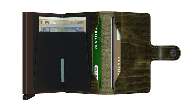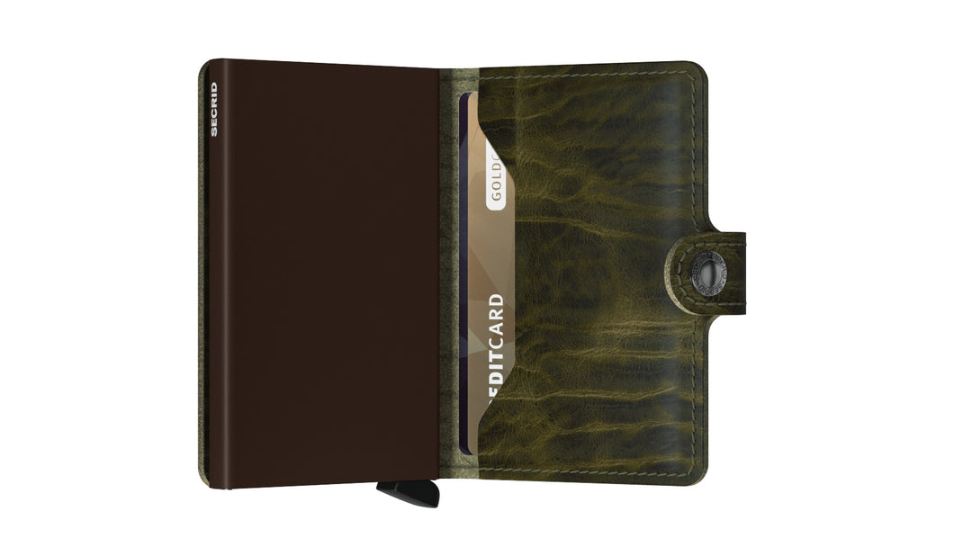 Secrid Miniwallet Dutch Martin Olive is named after a Dutch artisan who specializes in leather finishing, this leather is exclusively crafted for our wallets. The hard carnauba wax gives the Dutch Martin a characteristic look and feel. Dutch Martin is full-grain leather, made in Holland from European cowhide.