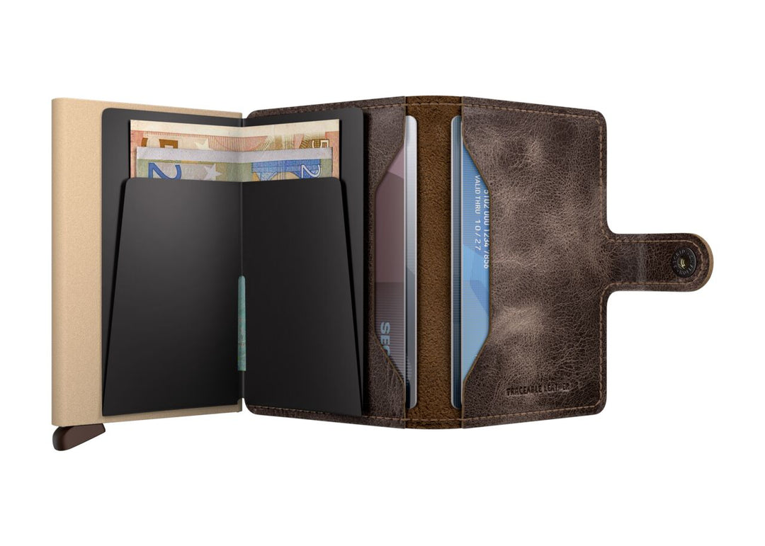 The iconic Secrid Vintage Traceable Clay Miniwallet is a compact, stylish, and secure wallet. The mini wallets of secrid are available in a wide variety of colors & styles. Each wallet offers ample space for cards, paper money, receipts, and business cards. The unique and patented cardslide mechanism allows you to access your cards in one simple and smooth motion. Your miniwallet also includes an aluminum casing that protects your credit card information and privacy and keeps you safe from digital pickpockets.