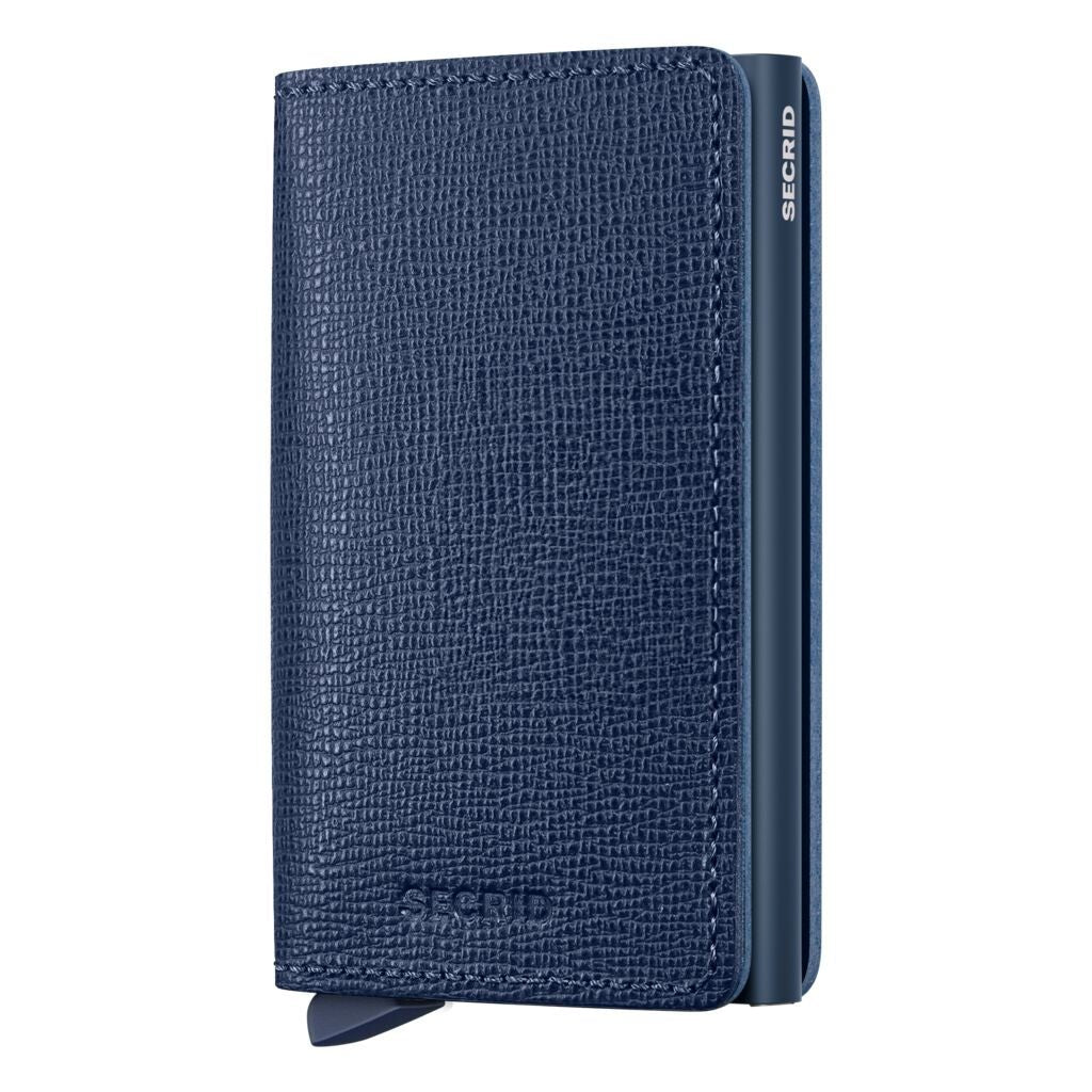 Secrid Slimwallet Crisple Navy is Embossed with a fine Saffiano print, Crisple ensures a long-lasting feeling of luxury. This leather is resistant to staining and scratching. Crisple is corrected-grain leather, made in Holland from European cowhide.