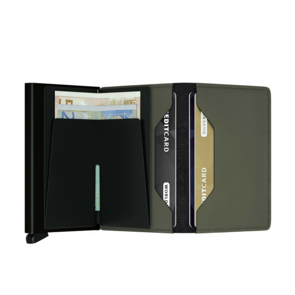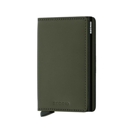 The iconic Secrid Matte Green-Black Slim Wallet is the slimmest, compact, stylish, and secure wallet. The secrid slim wallets for men & women are available in a wide variety of colors & styles. Even though the wallet is slim, there is ample space for cards, paper money, receipts, and business cards. The patented cardslide mechanism of Slim wallet allows you to access your cards in one simple and smooth motion. Every secrid slimwallet has an aluminum casing that protects your credit card information and privacy and keeps you safe from digital pickpockets.