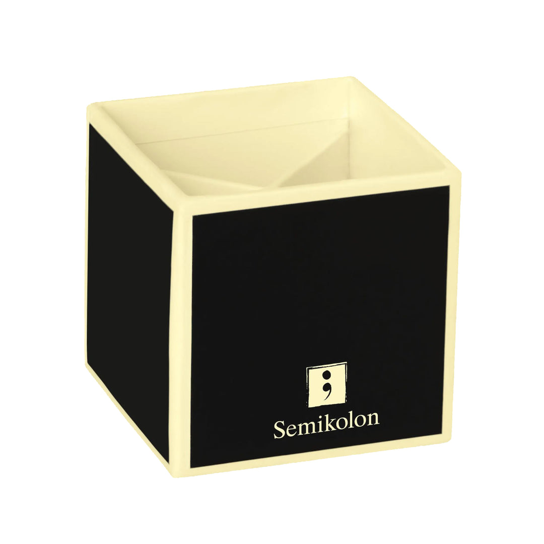 The Semikolon Pecil Cup made of sturdy cardboard is an attractive aid when it comes to organising your writing equipment. It’s a real eye-catcher on your desk and can be easily combined with other Semikolon "Edge" products. Size: 3.5 x 3.5 x 3.5 in.