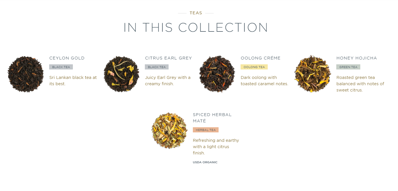 The Frank Lloyd Wright Petite Presentation Box contains 10 pyramid infusers, two of each new blend: Ceylon Gold (Black tea), Citrus Earl Grey (Black tea), Oolong Créme (Oolong tea), Honey Hojicha (Green tea) and Spiced Herbal Maté (Herbal tea).