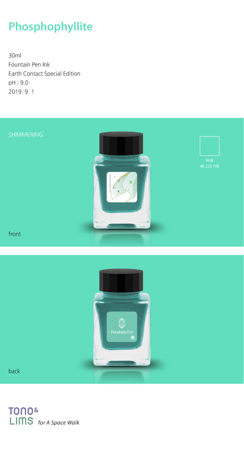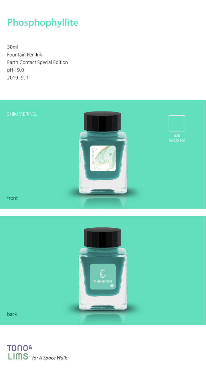 TONO & LIMS - 30ML Fountain Pen Ink - Earth Contact Line - Phosphophyllite (Shimmer)