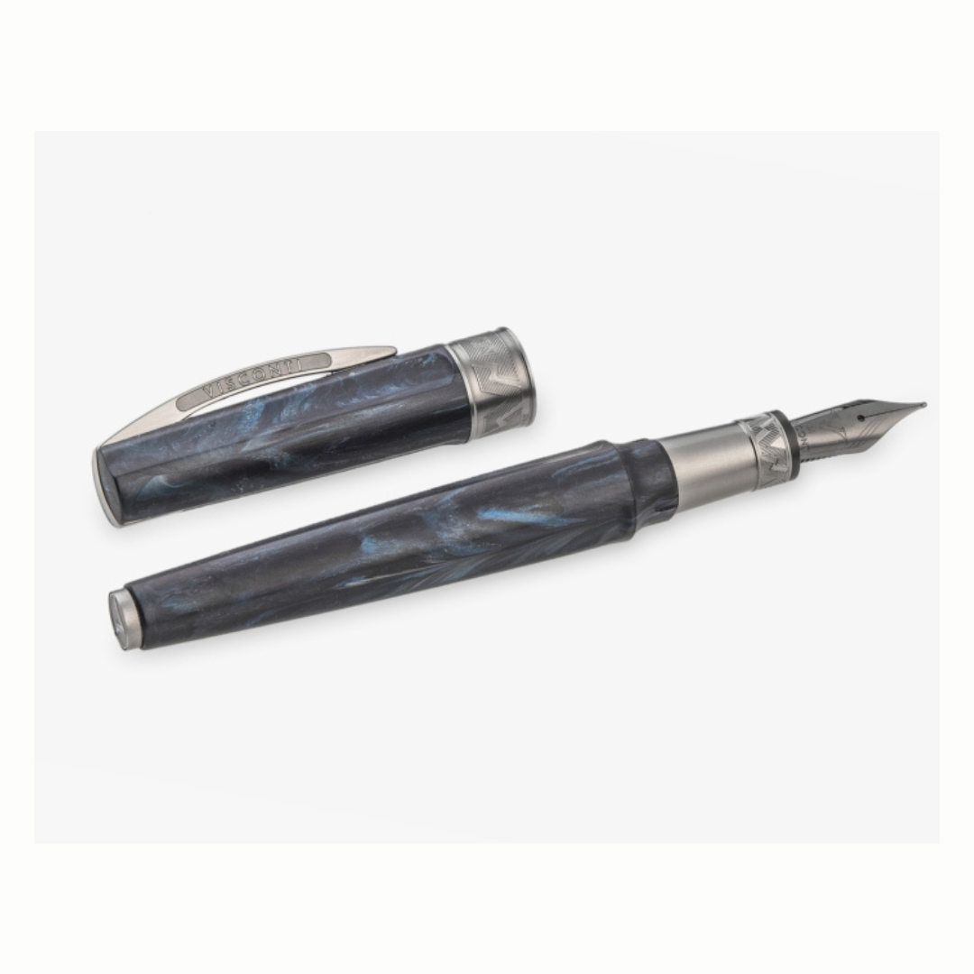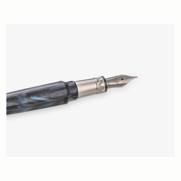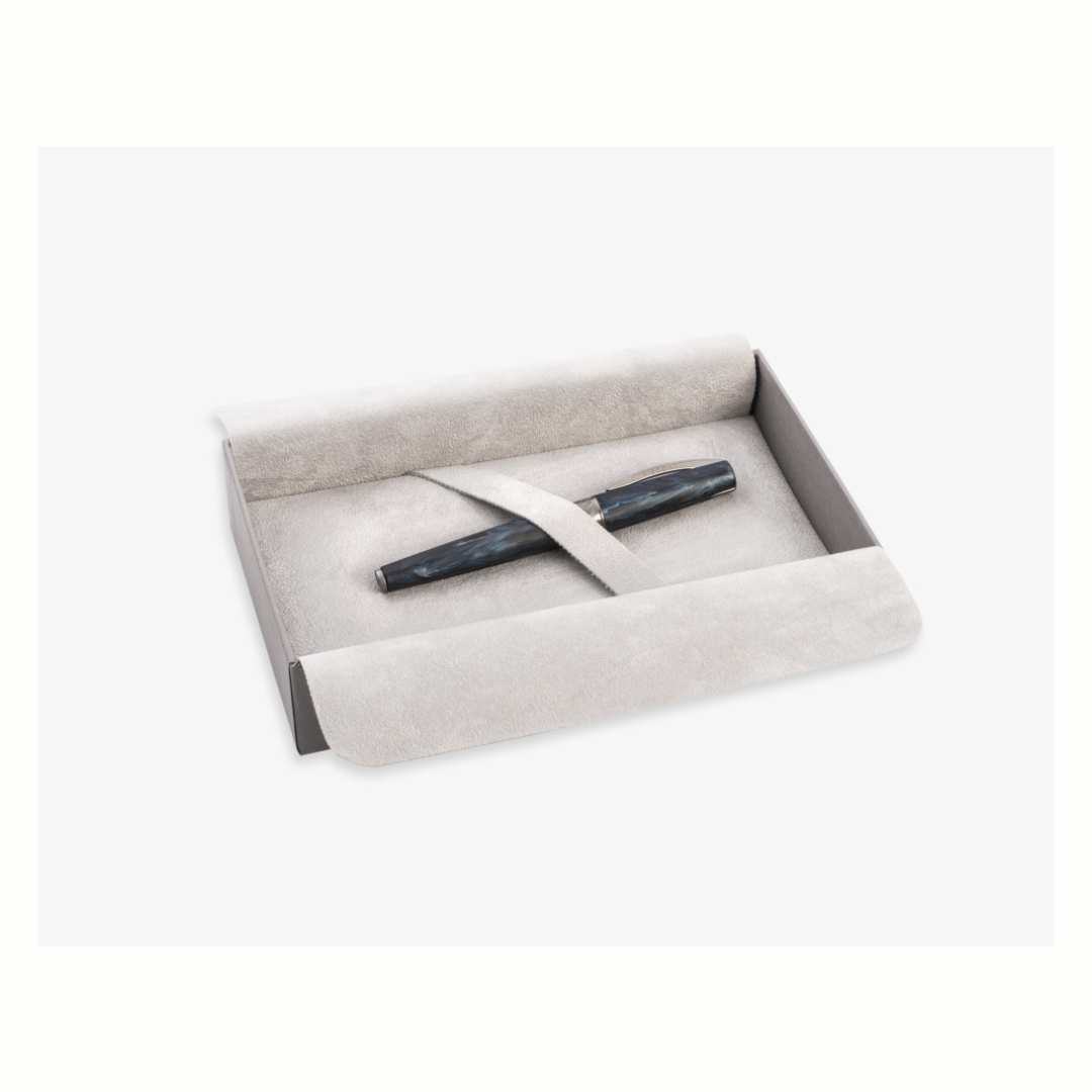 The elegant fountain pen version features a large, steel, yellow gold or ruthenium-plated nib. The pen's ink is refilled via cartridge or converter, the closure is magnetic. The metalwork is brass, yellow gold or ruthenium-plated and satin-finished.