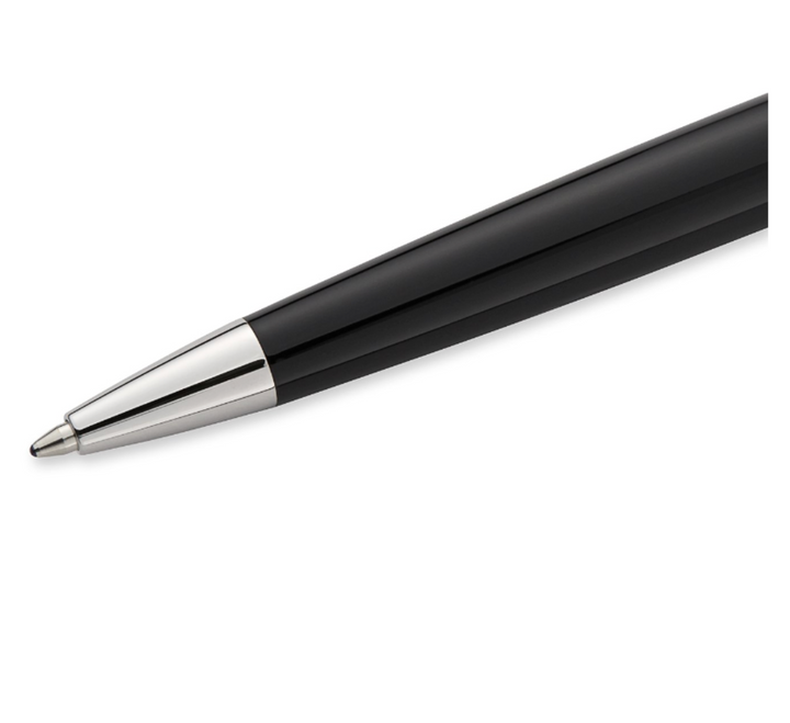 • Bold, gloss black lacquered barrel, sleek 23-karat gold plated trim, slim clip and broad ring that expresses cool, crisp style