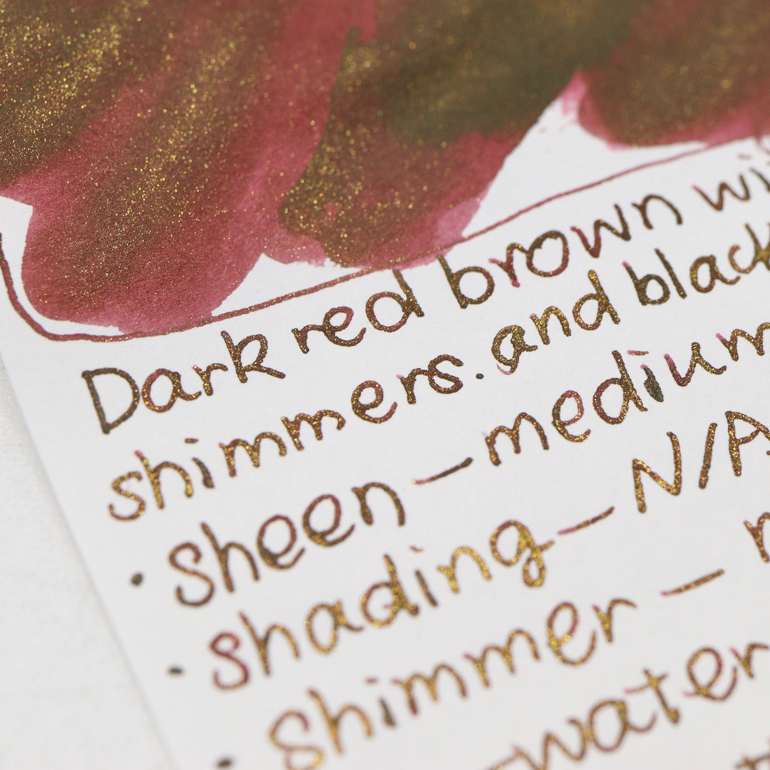 Charismatic but bit mad queen ink has red black base colour with gorgeous gold glitter and dark brown sheen.