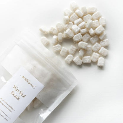 The pearl white sealing wax beads by Written Word is perfect for mixing with other shades, to give your wax seals a bit of sparkle!